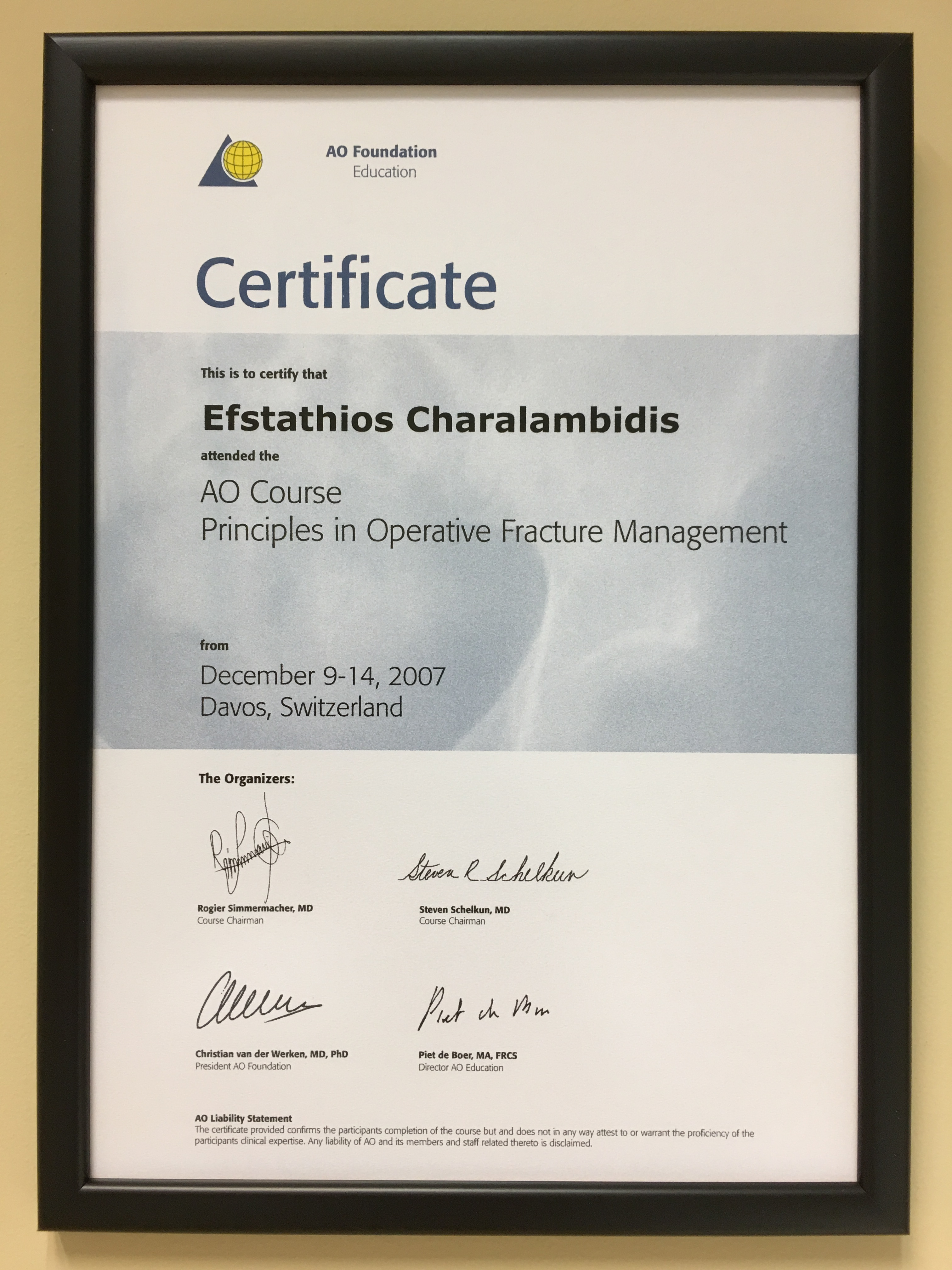 Ο ορθοπαιδικός χειρουργός Ευστάθιος Χαραλαμπίδης παρακολούθησε το εκπαιδευτικό σεμινάριο 87th AO Course "Principles in operative fracture management " που διεξήχθη στο Davos της Ελβετίας.